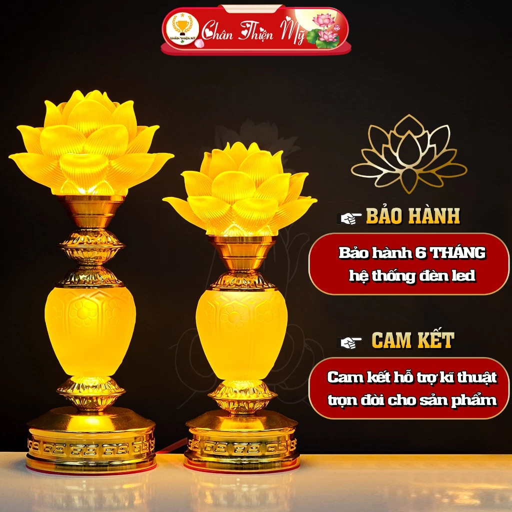 Đèn Thờ Bình Sen Vàng Lưu Ly Cao Cấp CHÂN THIỆN MỸ không chỉ là một vật phẩm trang trí mà còn là biểu tượng của sự thanh tịnh, may mắn và lòng thành kính, góp phần làm phong phú thêm không gian tâm linh của gia đình bạn.