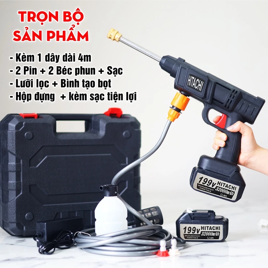 Máy Rửa Xe Cầm Tay Không Dây Áp Lực Cao 600W | Pin Lithium 25000mAh