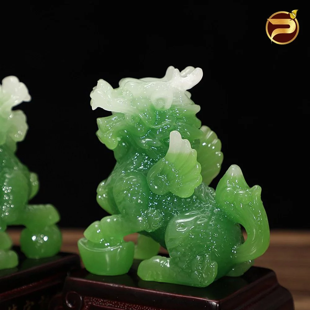 Sản phẩm được chế tác từ chất liệu Resin – composite giả ngọc cao cấp, chuyên dùng trong gia công đồ phong thủy. Chất liệu này không chỉ tạo nên vẻ ngoài giả ngọc tinh tế, sang trọng mà còn đảm bảo độ bền vượt trội, khả năng chống phai màu theo thời gian, giữ cho tượng Kỳ Lân luôn đẹp như mới.